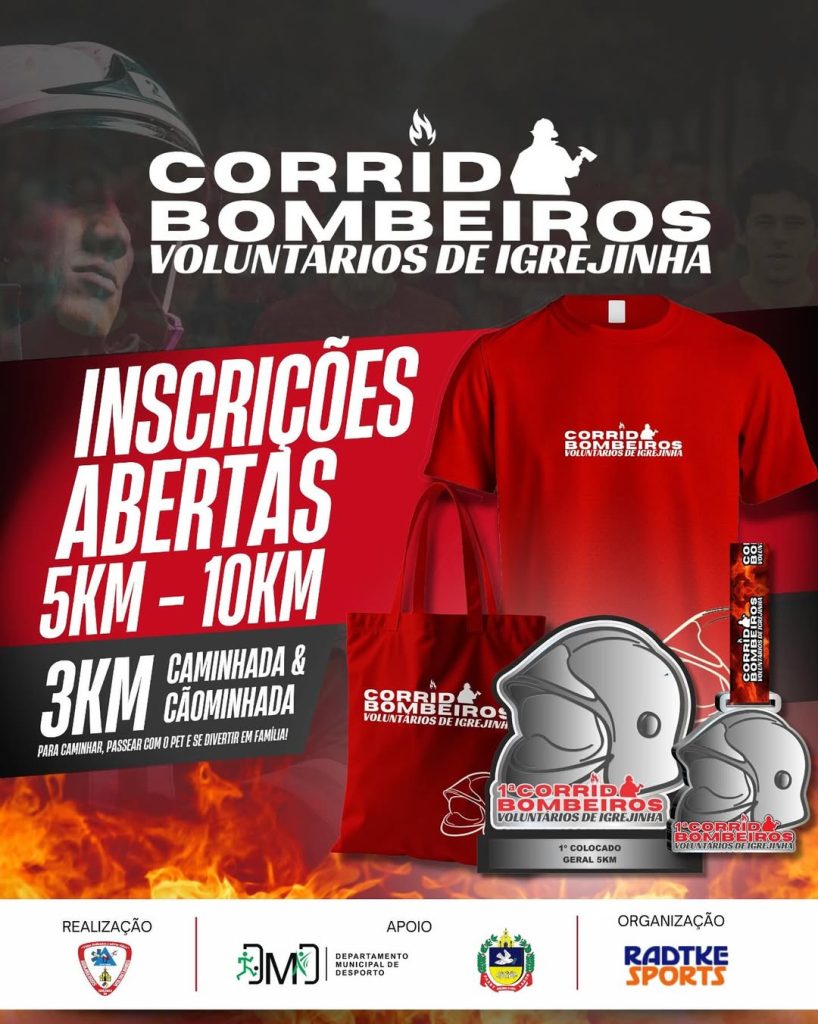 A 1ª Corrida dos Bombeiros Voluntários ocorre em Igrejinha no dia 16 de novembro, em alusão ao aniversário de 20 anos da corporação. A abertura das inscrições foi anunciada por meio das redes sociais, com diferentes modalidades, alcançando um público diverso.