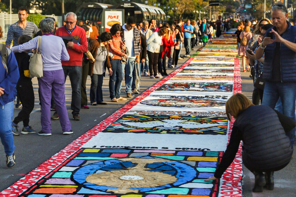 O dia também é conhecido pelos tapetes coloridos confeccionados por várias ruas em todo o mundo, uma tradição da celebração de Corpus Christi.
