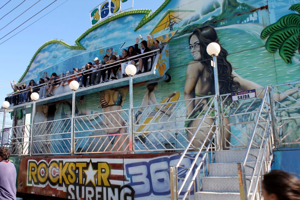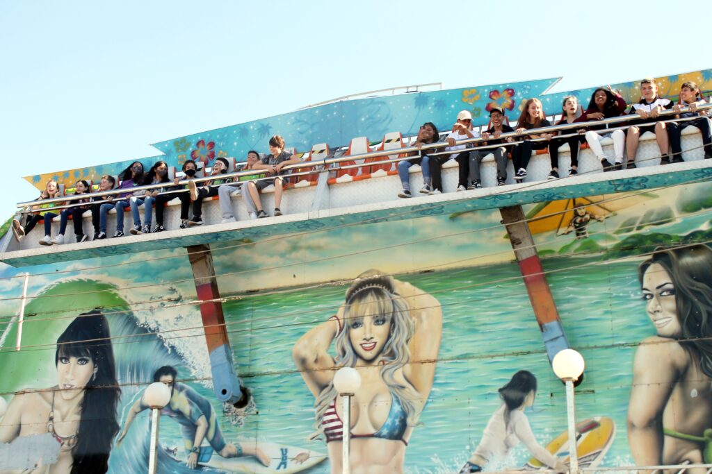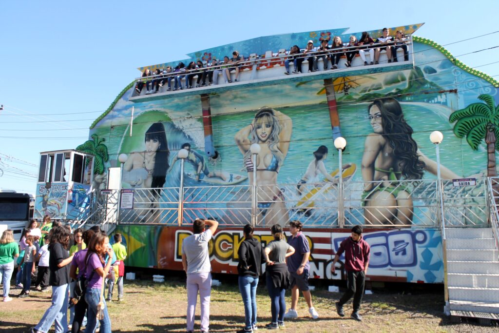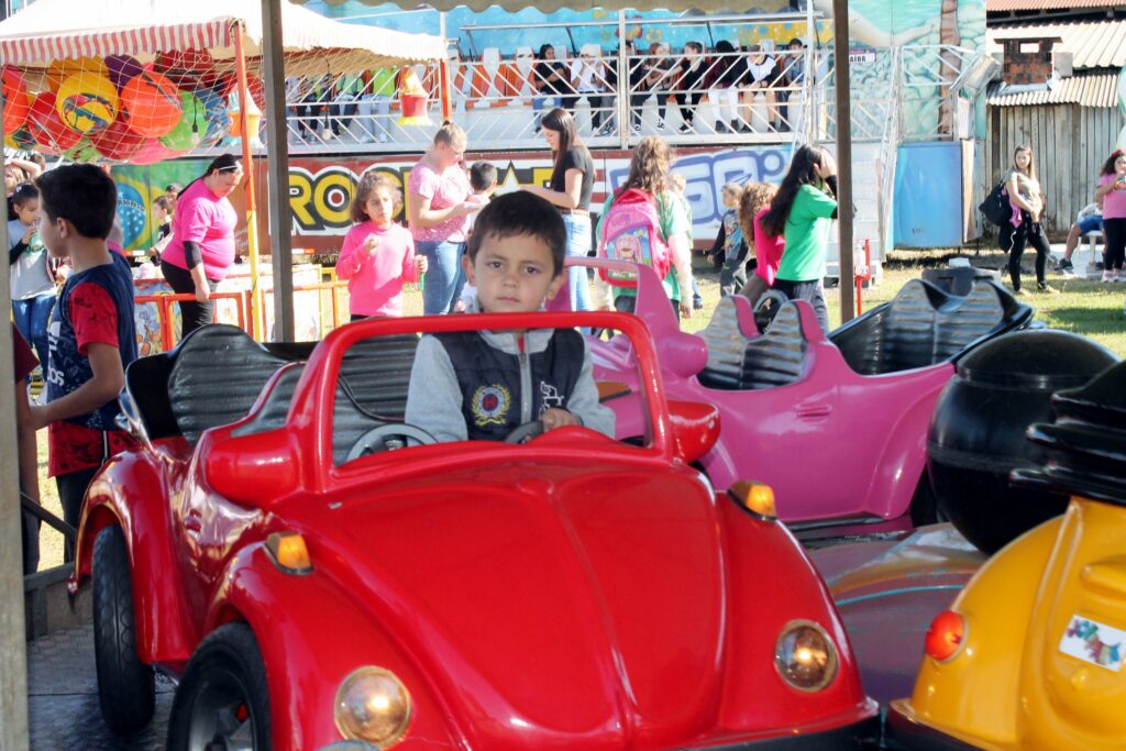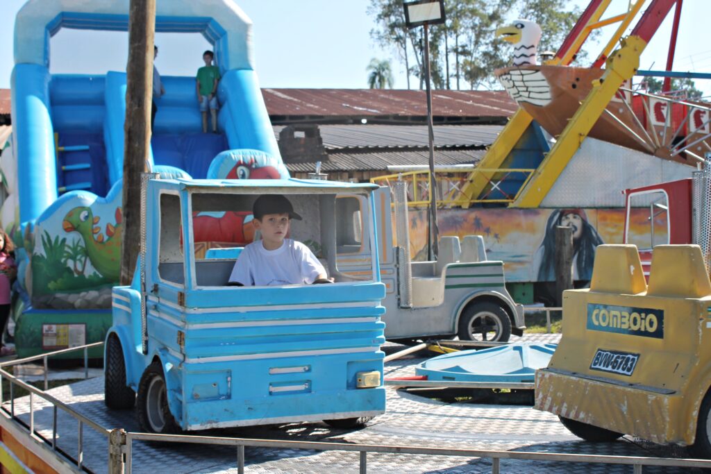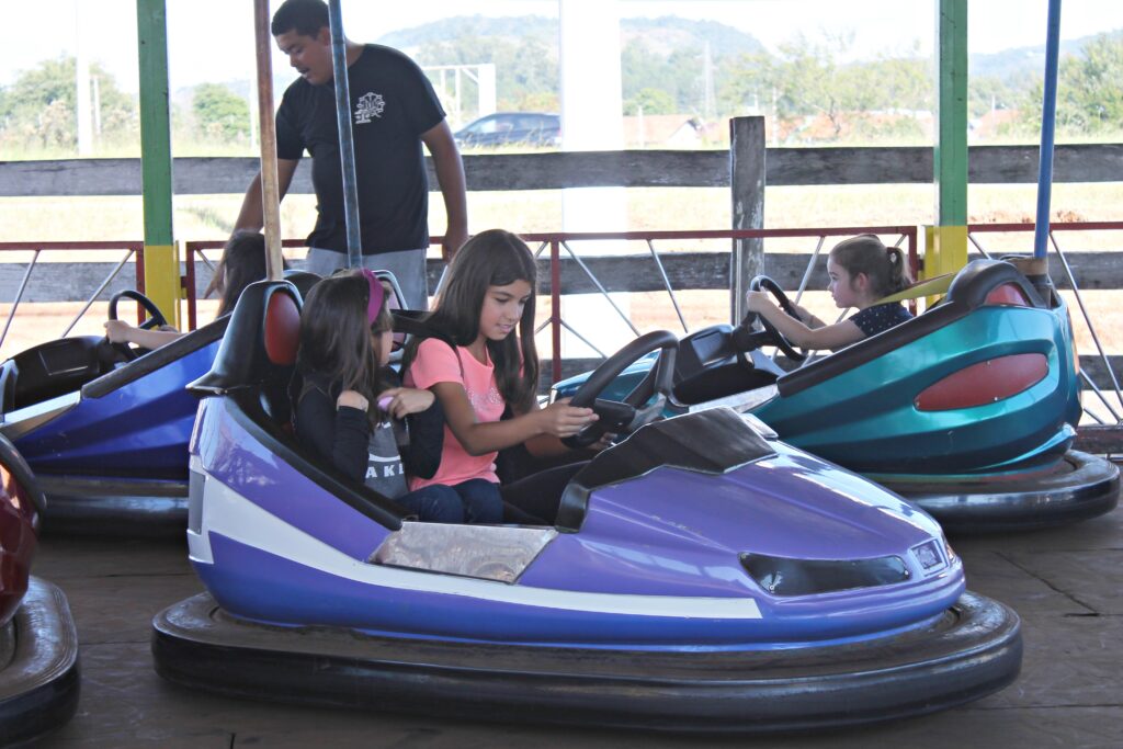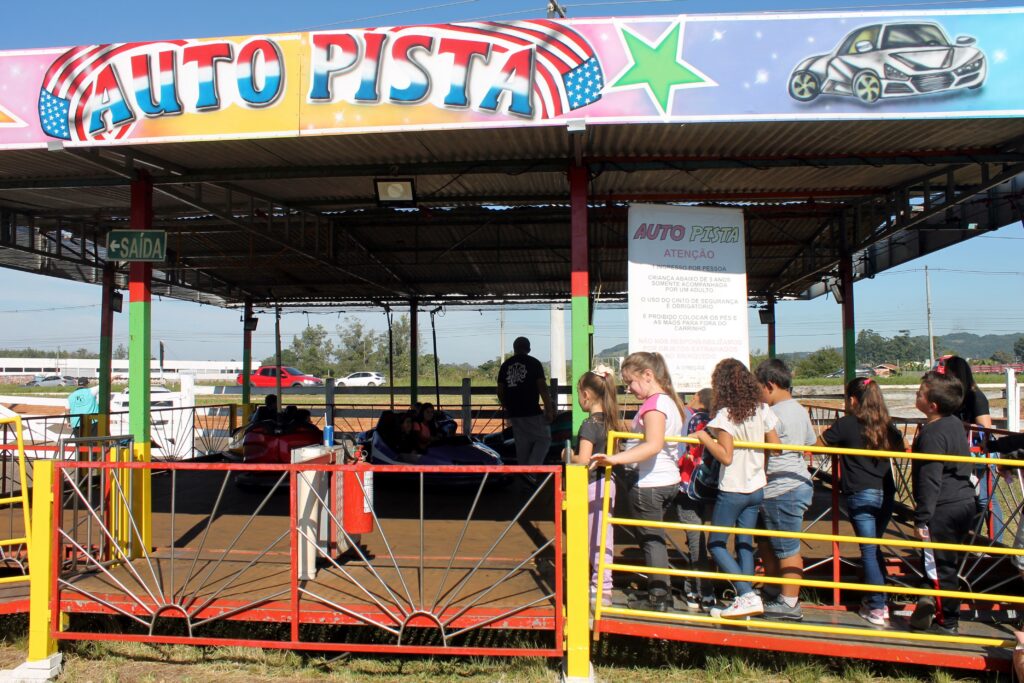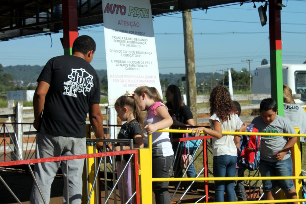 Na manhã e tarde de sexta-feira (22), enquanto eram realizadas as provas de tiro de laço, estudantes da rede municipal de ensino passeavam pelo local e se divertiam no parque de diversões e nos brinquedos infláveis, ou faziam um lanche na praça de alimentação montada na sede.