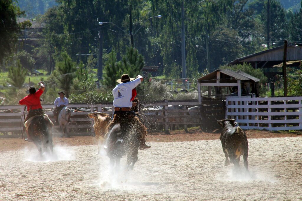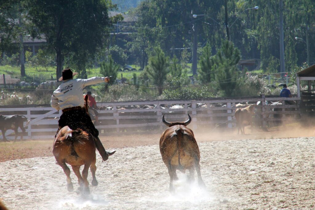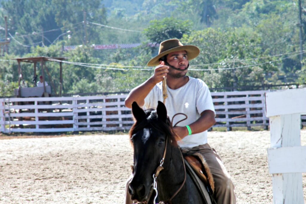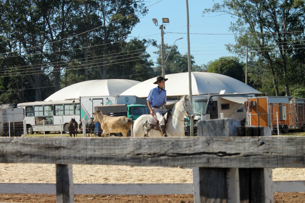 Também na sexta-feira de manhã, enquanto aguardava sua vez de participar das competições de tiro de laço, Luciano Fagundes, morador de São Francisco de Paula e integrante do Piquete Estância do Ribeirão, aproveitou para passear com sua esposa Priscila de Carvalho e o filho Pedro Fagundes, de quatro anos.