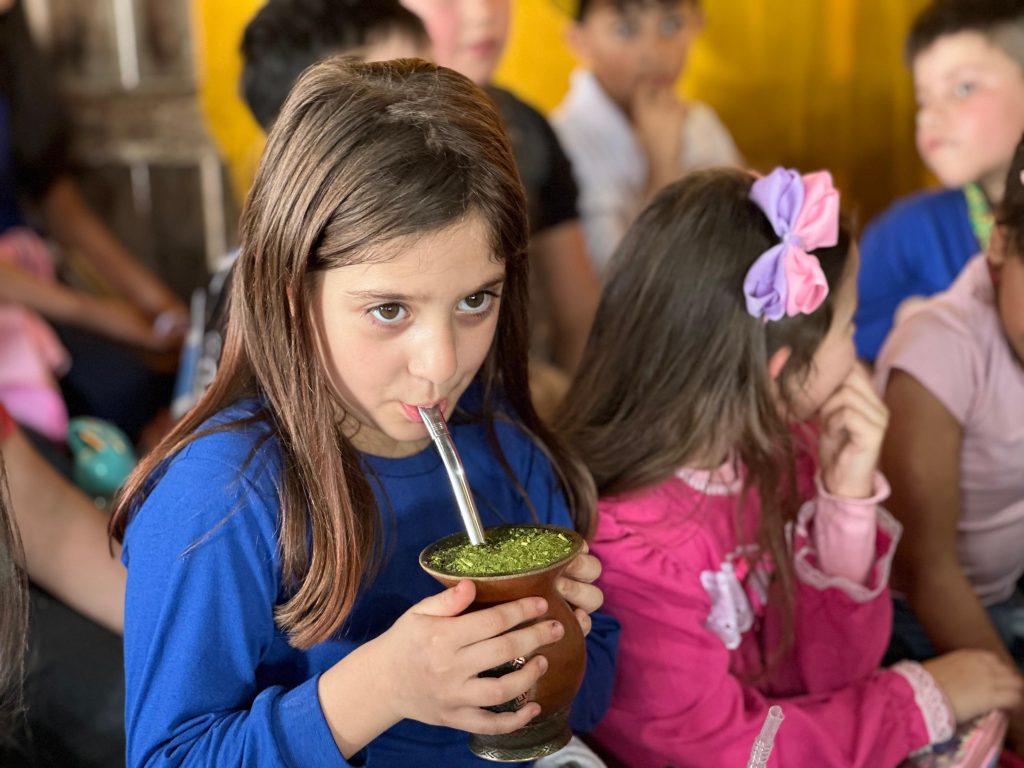 A tradição do chimarrão também esteve presente. A 3ª Prenda Juvenil, Isadora Pohlmann Lemos, do CTG Essência Gaúcha, de Taquara, ministrou a oficina que apresentou a história da erva-mate, desde os povos indígenas até a chegada dos europeus, além de ensinar as crianças a preparar a bebida símbolo do Rio Grande do Sul.