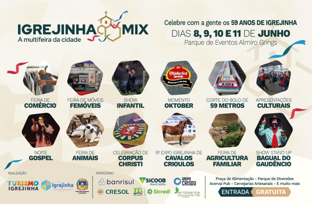 “O Igrejinha Mix já é lugar de destaque nas programações do ano em nossa cidade. Ele já é um evento esperado e querido pela comunidade, por oferecer momentos de entretenimento para toda a família”, reforça o prefeito de Igrejinha.