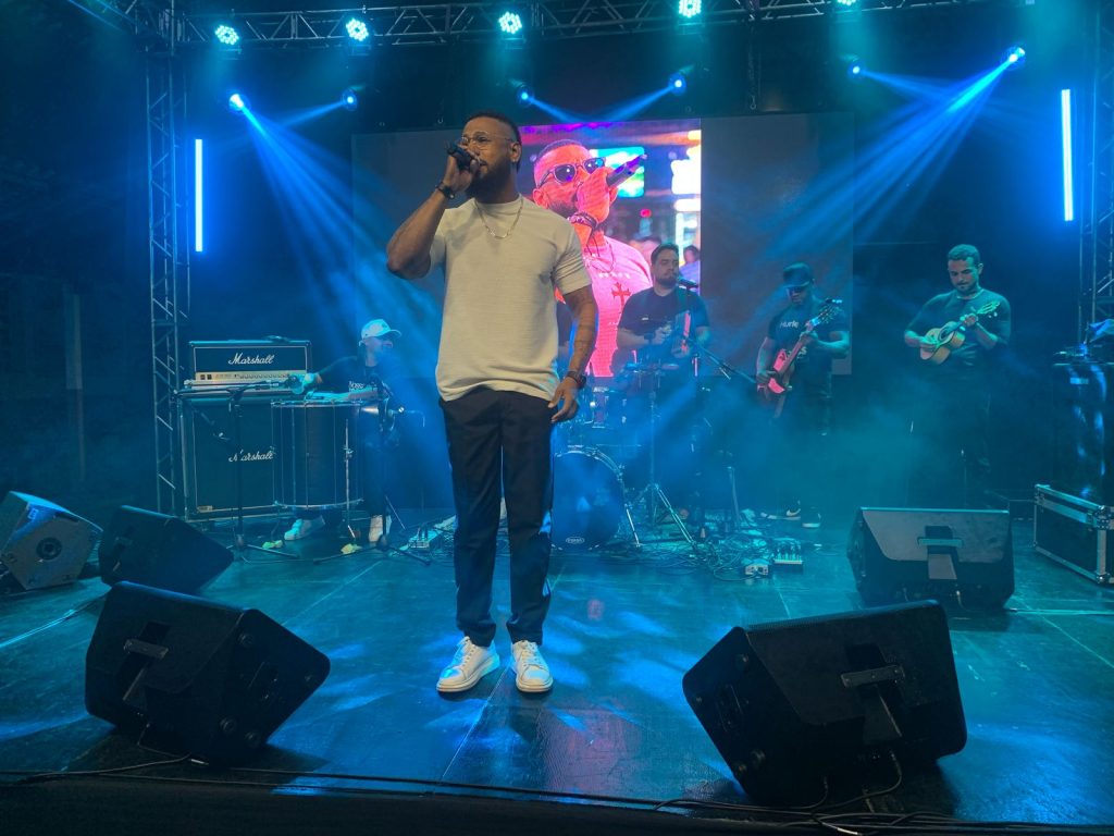 O cantor Cristian Souza e sua banda se apresentaram neste domingo (27) como a quarta atração do Taquara Fest, evento que celebra os 139 anos do município. Durante a apresentação, Cristian destacou os músicos que o acompanharam: Bruninho na percussão, Fabinho no pandeiro, Tevez no reco-reco e percussão geral, Carlos Henrique (Canu) no violão e Dioguin no cavaquinho.