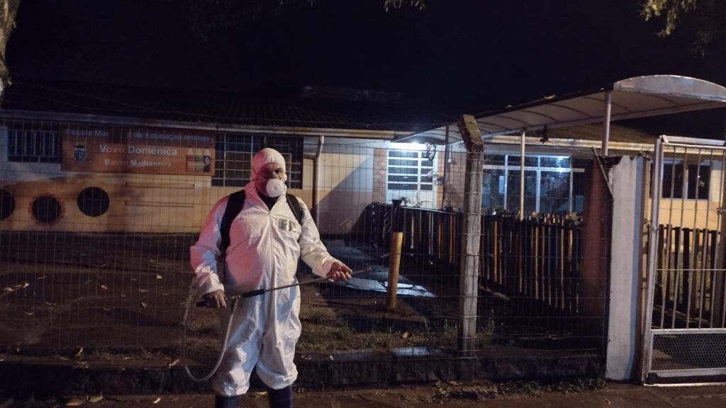A limpeza é realizada por um agente da Defesa Civil após as aulas, no turno da noite, e a higienização completa ocorre na manhã seguinte, antes dos alunos chegarem na escola. O coordenador ressalta que o produto utilizado para a descontaminação não causa riscos às pessoas. “É um produto liberado pela Agência Nacional de Vigilância Sanitária (Anvisa) para as sanitizações de superfícies e descontaminação de ambientes. Seu princípio ativo dura por algumas horas e não há riscos de lesões para as crianças ou adultos.”