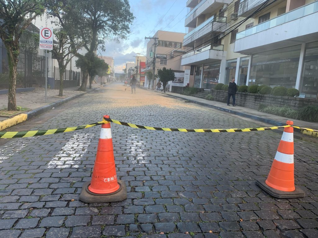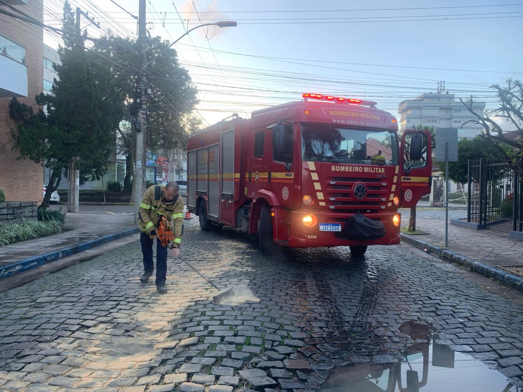 Trecho próximo ao Rissul recebeu serragem por equipes do Corpo de Bombeiros e Defesa Civil