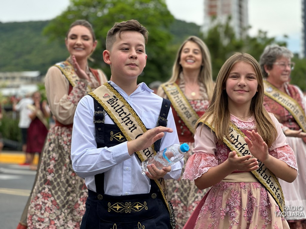 A atividade integrou a programação da 36ª edição da festa e contou com a presença da corte da Oktoberfest, além de representantes dos setores público e privado. No palanque, autoridades acompanharam o momento festivo ao lado da comunidade, que prestigiou em grande número o desfile.