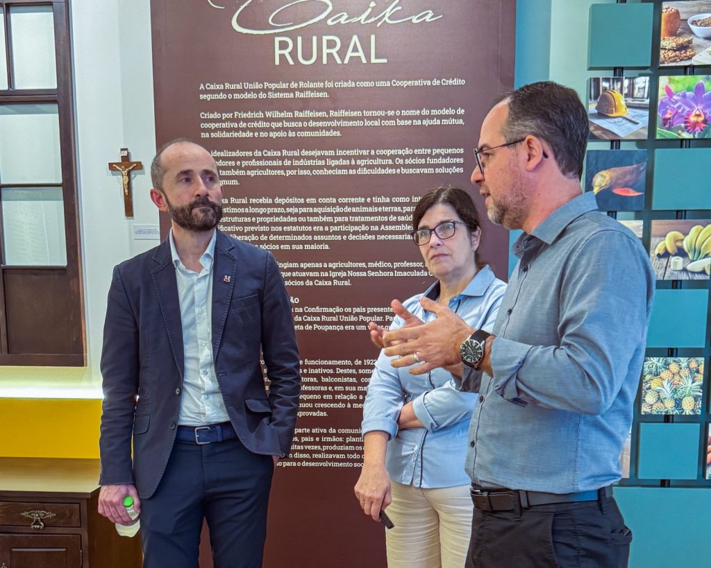 A visita foi conduzida pelo presidente do Conselho de Administração da Sicredi Caminho das Águas, Álvaro Link, e pelo vice-presidente, Francisco Ferreira, e contou também com a presença do historiador Rodrigo Trespach. Durante a agenda, foram apresentados aspectos da trajetória da cooperativa e do desenvolvimento do modelo cooperativista na região.