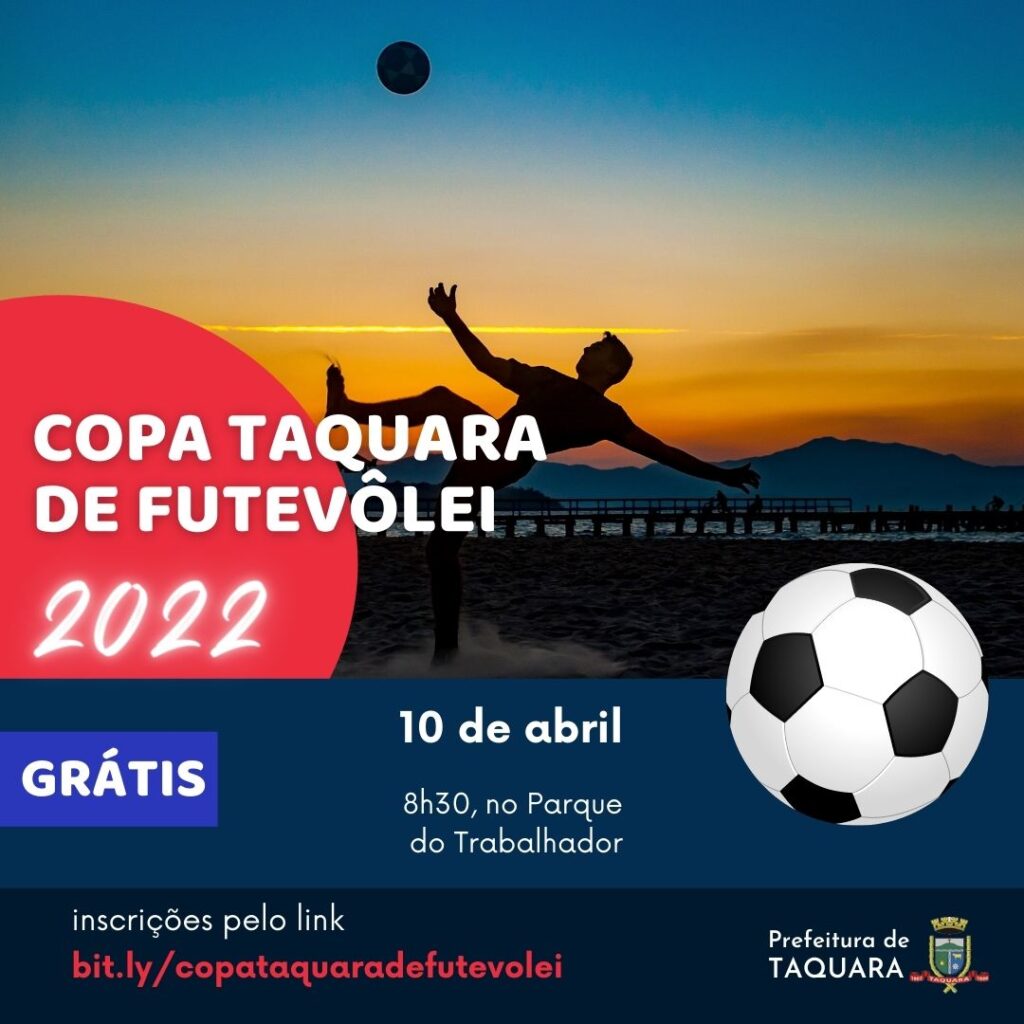 Na segunda-feira (14), a Diretoria de Esportes de Taquara abriu as inscrições para a primeira edição da Copa Taquara de Futevôlei, que será realizada nas quadras de areia do Parque do Trabalhador, no dia 10 de abril, a partir das 8h30min, e dividido nas categorias Feminina e Masculina.