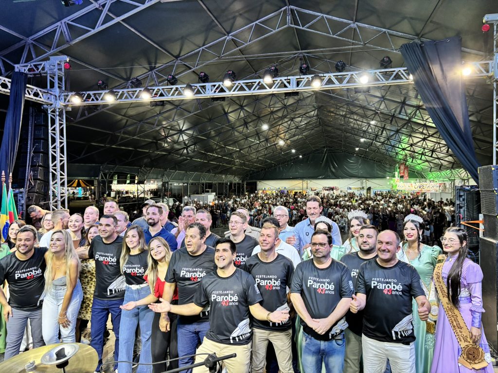 O ex-prefeito Diego Picucha, presente na solenidade, lembrou da transformação do evento. “Essa festa, que antes era chamada de ‘Atolando Parobé’, hoje mostra o salto de qualidade da cidade. Fizemos as três maiores obras da história de Parobé: iluminação de LED, asfalto em bairros e transporte público gratuito com acessibilidade. Tudo isso com respeito ao dinheiro da nossa gente. Essa festa é para comemorar a devolução da dignidade ao povo da cidade”.