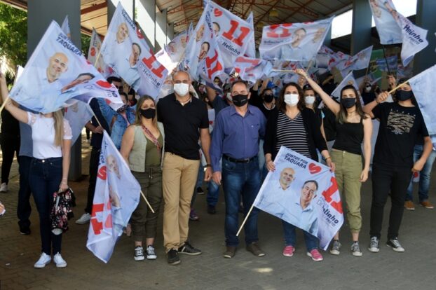 A campanha majoritária da coligação Juntos por Taquara, dos candidatos a prefeito e vice, respectivamente, Hélio Cardoso Neto, o Dr. Helinho (PP), e Daniel Laerte Lahm (PTB), o Preto, realizou suas primeiras ações com caminhadas neste sábado (10). Segundo a coligação, cerca de 400 apoiadores saíram pelas ruas centrais do município, na parte da manhã, carregando bandeiras e entregando o material impresso da dupla. O prefeito Tito Lívio Jaeger Filho (PTB) também participou da atividade.