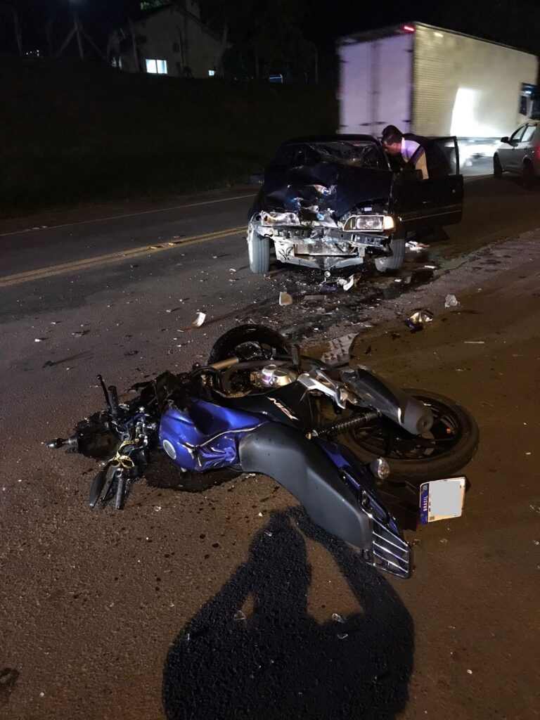 Duas pessoas ficam feridas após colisão entre carro e moto na ERS-020 em Taquara