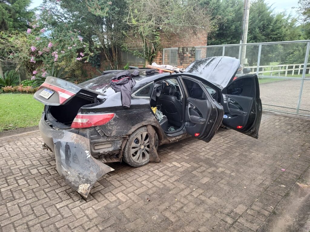 “A Brigada Militar, dentro da técnica, acompanhou o veículo mantendo a segurança. E, próximo a uma cervejaria que fica localizada no interior do município de Nova Hartz, um dos pneus do veículo furou e o carro ficou com o para-choque danificado, momento em que a dupla foi abordada”, conta capitão Petrus.