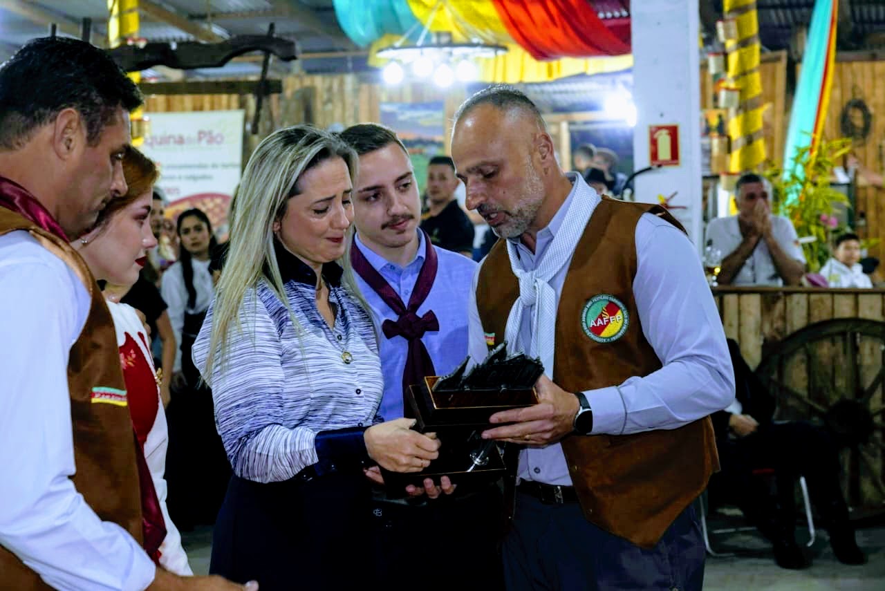O momento foi acompanhado pela família, esposa Edna e filhos Bruna e Junior, tocando o coração de todos os presentes. Logo em seguida, ocorreu o show de Elton Saldanha e o primeiro dia do evento foi encerrado com uma bailanta, animada pelo Grupo Pilcha Nova.