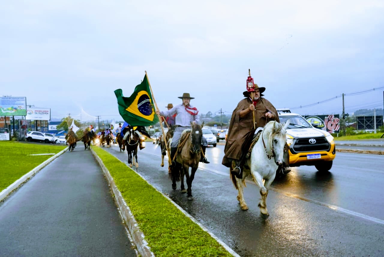 A concentração dos cavaleiros foi na sede da Brigada Militar. Por volta de 17h, o grupo seguiu pela Avenida Sebastião Amoretti, ERS-239, entrando nas ruas Federação, Coronel Evaristo, Júlio de Castilhos, passando pela Praça Marechal Deodoro, entrando na Rua Tristão Monteiro, seguindo para a Sede Campestre do CTG O Fogão Gaúcho para a abertura oficial, que iniciou às 20h.