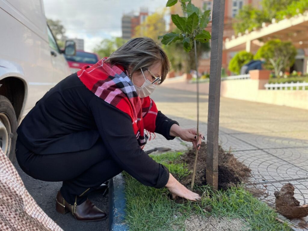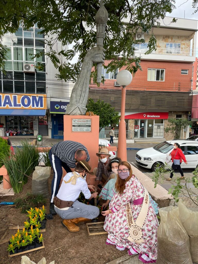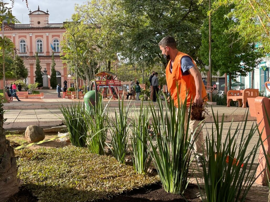 Durante o mutirão de plantio de mudas na Praça Marechal Deodoro, a prefeita Sirlei Silveira destacou a atuação em parceria entre poder público com o empresariado local para a plantação das flores na praça, coincidindo com o início da primavera.