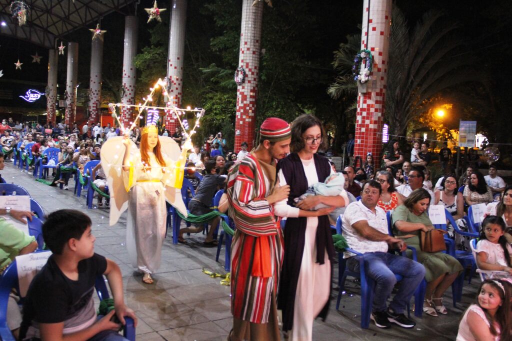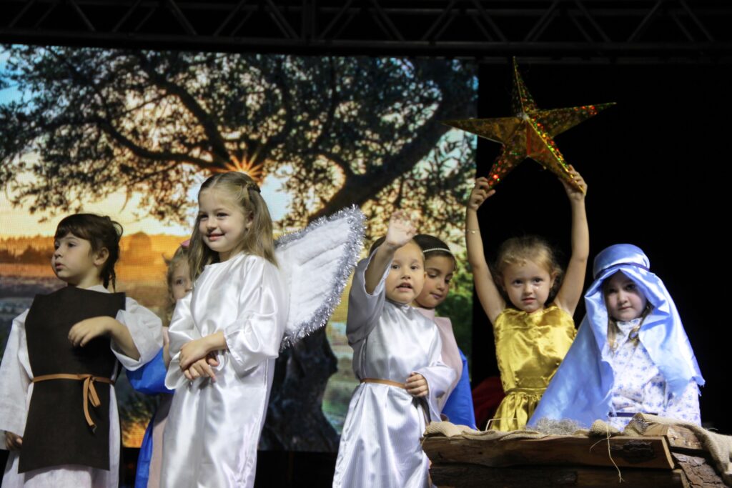 Depois foi a vez da comunidade assistir a encenação de uma Peça Teatral Natalina com Cantata, que encantou a todos pela beleza e riqueza de detalhes, representando a verdadeira história de natal, contando os eventos que levaram ao nascimento do menino Jesus, por meio de ambientes e momentos marcantes que fizeram parte da sua história.