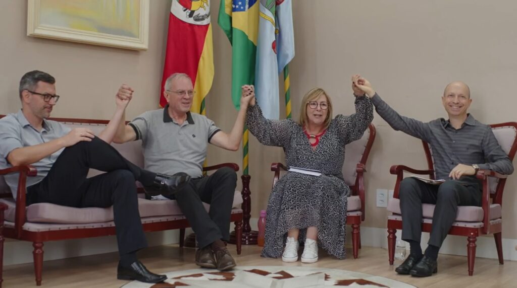 Com a intenção de realizar uma mobilização e conscientização de como destinar parte do Imposto de Renda para entidades de Taquara e do Vale do Paranhana, que trabalham com a proteção e desenvolvimento social e cultural de crianças e adolescentes, ocorreu na manhã desta sexta-feira, dia 11 de março, a live “Responsabilidade e o Imposto de Renda”. O encontro aconteceu na Prefeitura de Taquara e foi transmitido via Facebook, reunindo a Prefeita de Taquara, Sirlei da Silveira; o vice-diretor Administrativo e Financeiro da Faccat, Sérgio Nikolay; o auditor da Receita Federal Roberto Belini; e o contador Cristiano Gomes. Interessados em participar da campanha, que está na reta final, podem destinar até 3% do valor do imposto devido até 29 de abril.