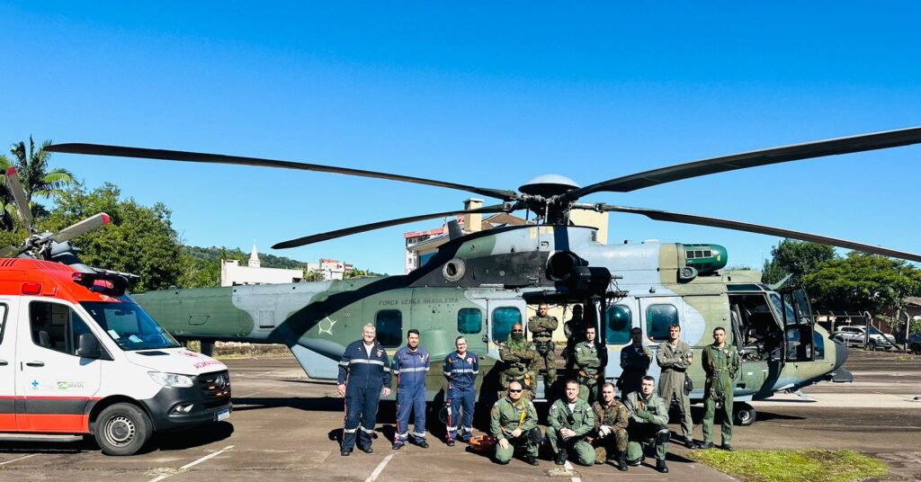 No início da tarde desta quarta-feira (15), por volta de 12h45min, equipes do Serviço de Atendimento Móvel de Urgência (Samu) de Taquara e da Força Aérea Brasileira (FAB) realizaram o transporte de um paciente em estado grave, transferido do Hospital Sagrada Família, em São Sebastião do Caí, para o Hospital São Francisco de Assis (HSFA), em Parobé.