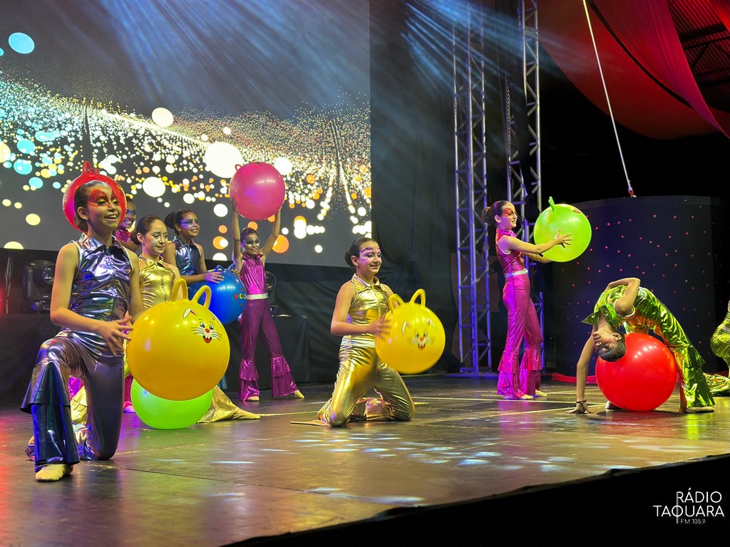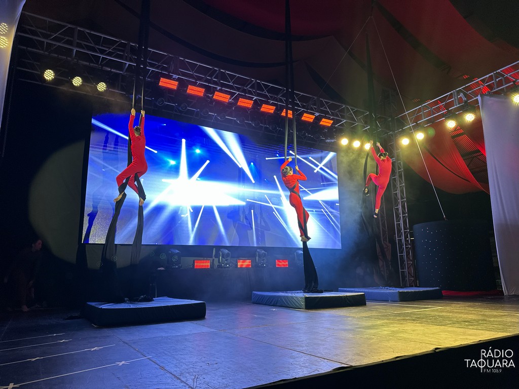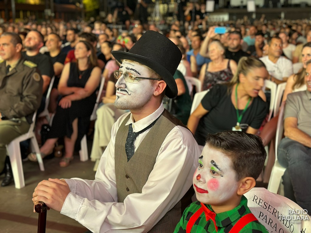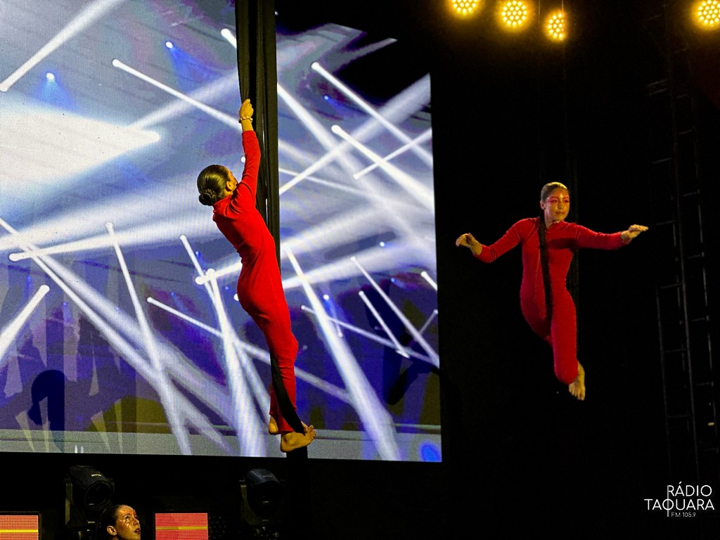 O espetáculo “O Natal que fez o Circo Brilhar” abriu oficialmente as comemorações natalinas de 2025 em Igrejinha, na noite desta sexta-feira (28), no Parque de Eventos Almiro Grings. A apresentação, protagonizada por 160 alunos do Centro Municipal de Atividades Educacionais (CEMAE), encantou o público com um musical que uniu teatro, música e performances inspiradas no universo circense, sem deixar de lado os valores tradicionais do Natal, como amor, solidariedade e união familiar.