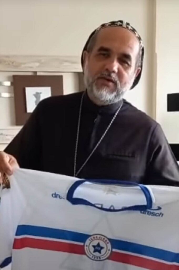 O padre realizou a publicação de um vídeo, que foi compartilhado na rede social do time, nesta quarta-feira (7). O religioso mostrou a camiseta que ganhou do clube e disse ter gostado bastante do presente. Após agradecer, ele veste o uniforme por cima da batina.