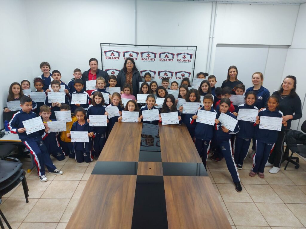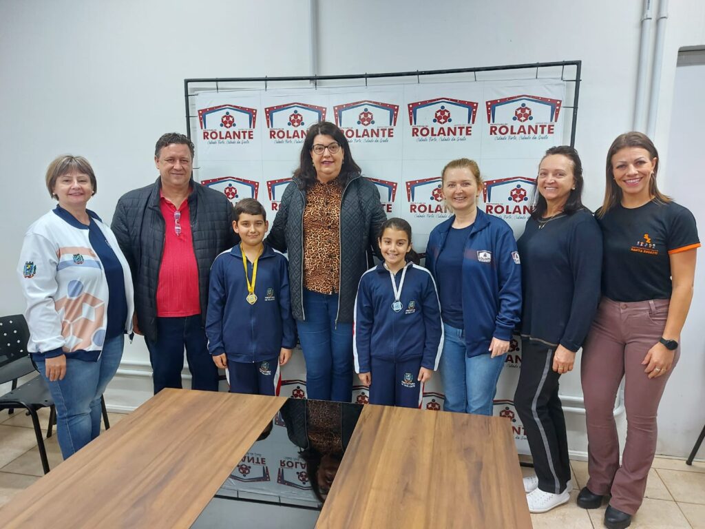A entrega das medalhas e dos certificados foi realizada pela secretária de Educação e Esportes, Simone Tadiotto, juntamente com as coordenadoras pedagógicas da Secretaria, Bárbara Keiser, e Alexandra Kellermann, coordenadora da Alimentação Escolar, Neusa Pretto de Moraes, e a coordenadora da Escola Santa Zucatti, Mônica Morschel.