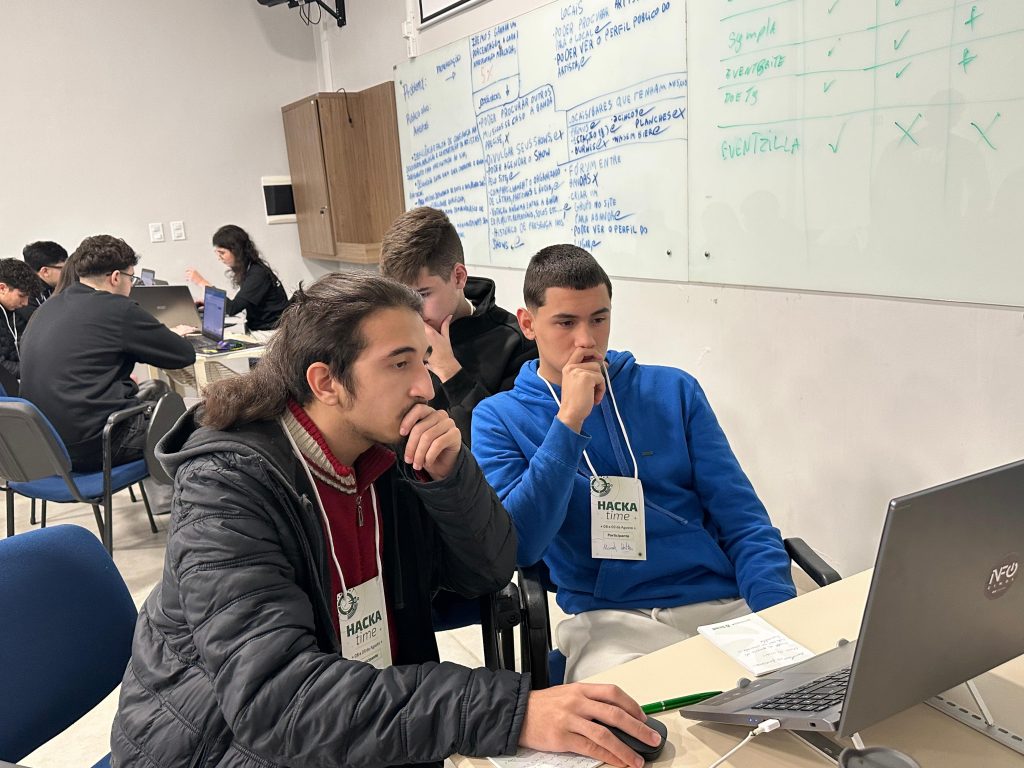 Durante dois dias, estudantes do ensino médio participaram do Hackatime na Faccat, desenvolvendo soluções inovadoras para problemas reais da comunidade