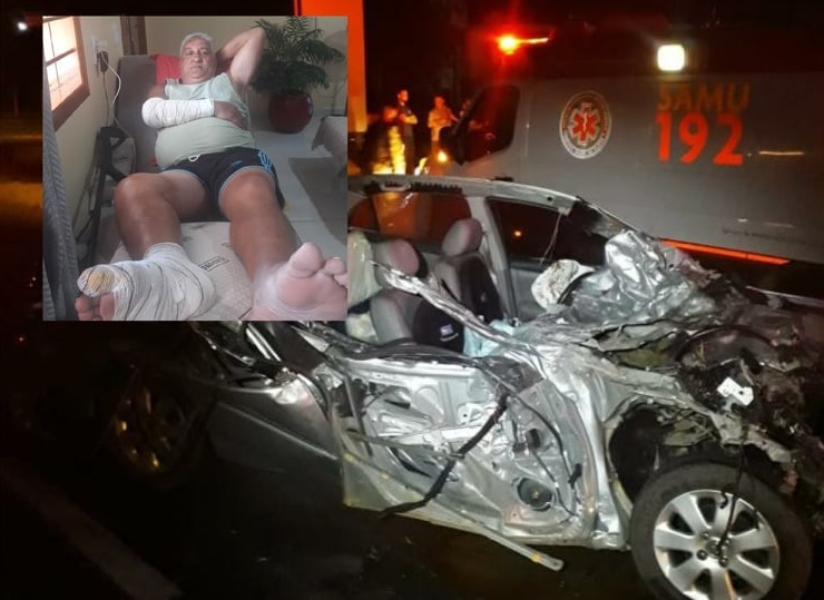 Questionado sobre seu carro, seu Valdacir diz lembrar pouco de como ficou o veículo. “Olha, a respeito do meu carro, eu só lembro que tinha a porta do motorista. O resto eu não vi mais”, frisa. E, conforme as imagens, realmente, a pancada foi tão forte que parece ter arrancado todo o lado do carona do veículo, desde a parte frontal até a traseira. “Me parece que eu consegui sair caminhando, mas, com a pancada eu esqueci das coisas e saí sem olhar para trás”, completa.