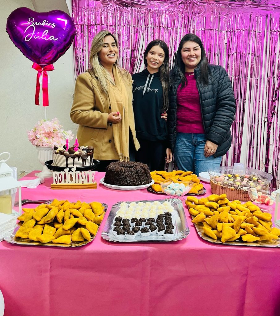 Além de Kalita, Camila e outras oito voluntárias, a festa de aniversário da Julia contou ainda com a participação de seus familiares, moradores do bairro Barrinha, que também estavam abrigados no mesmo local.
