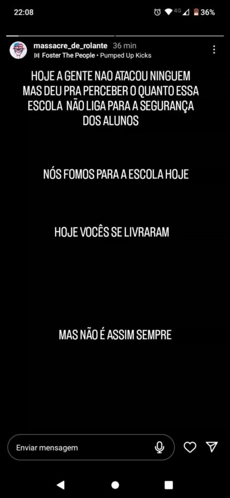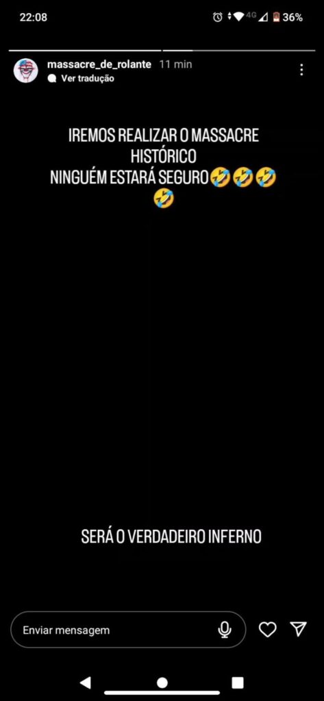 As forças de segurança de Rolante – Brigada Militar e Polícia Civil – informam à população, que estão atentas e ainda mais unidas para combater esses fatos, envolvendo atentados em escolas ou mesmo em qualquer tipo de ‘fake news’ relacionada, que seja divulgada. Ainda conforme as forças, todos os envolvidos serão responsabilizados.