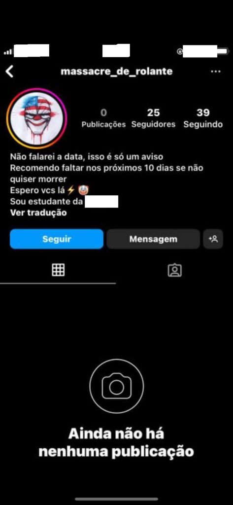 Durante uma ação conjunta, entre Polícia Civil, Brigada Militar e Prefeitura de Rolante, um adolescente de 14 anos foi apreendido, nesta quarta-feira (12), após criar um perfil na rede social Instagram, intitulado ‘Massacre de Rolante’. Neste perfil, havia a divulgação de que um atentado seria realizado em uma escola, do município de Rolante, e afirmava que o massacre seria “histórico e ninguém estaria seguro”.