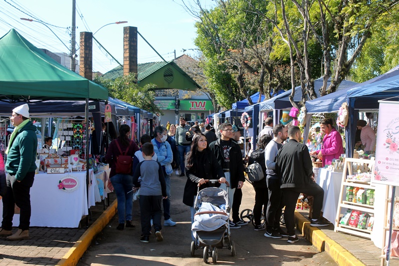 Por volta de 10h, passada uma hora do início da feira, a reportagem da Rádio Taquara esteve no local, ao lado da Praça da Bandeira, e pode conferir a grande movimentação de visitantes, que se dividiam entre os mais de 40 estandes montados ao longo da rua.