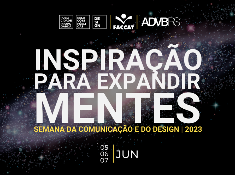 A Semana da Comunicação e do Design 2023, evento que será aberto ao público e gratuito, ocorrerá sempre das 19h30min às 22h30min, no auditório 3 do Centro de Eventos.