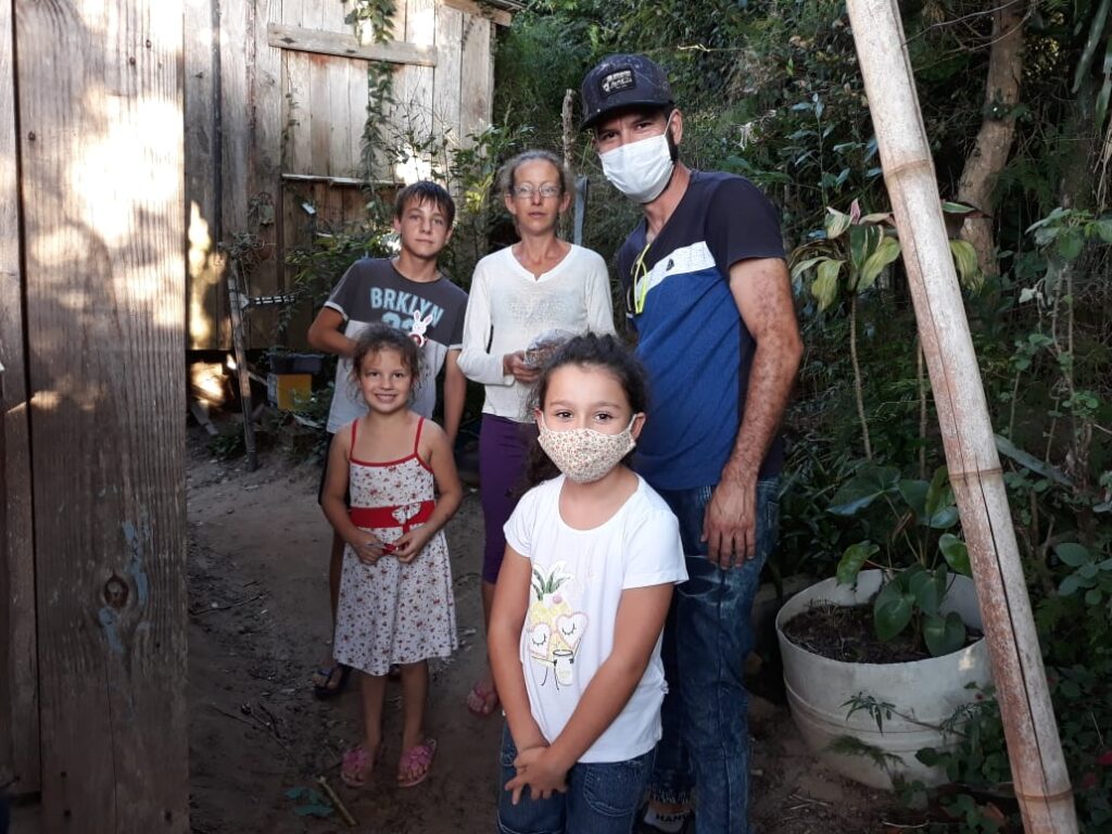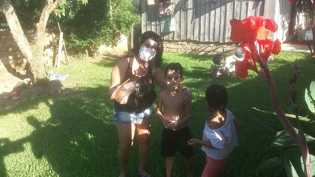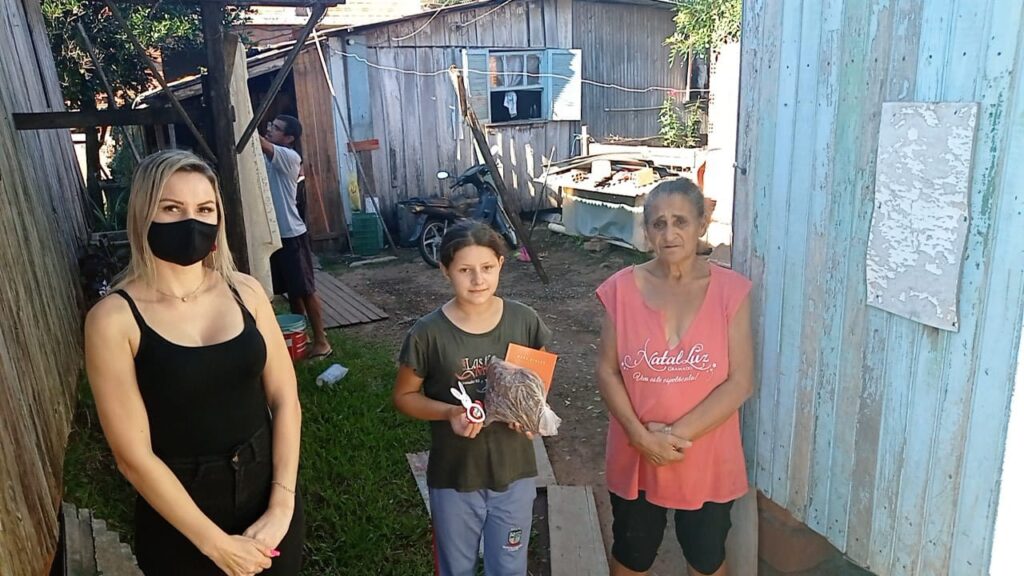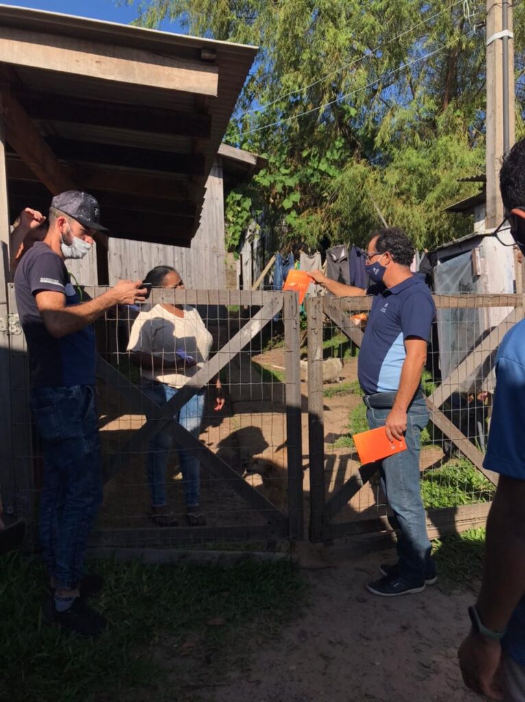 Representantes do IACS, juntamente com os trabalhadores do CRAS de Taquara, o educador social Renato Leonir Mércio da Silva e a psicóloga Leidi Daiana Flesch, participam das entregas nas residências das famílias.