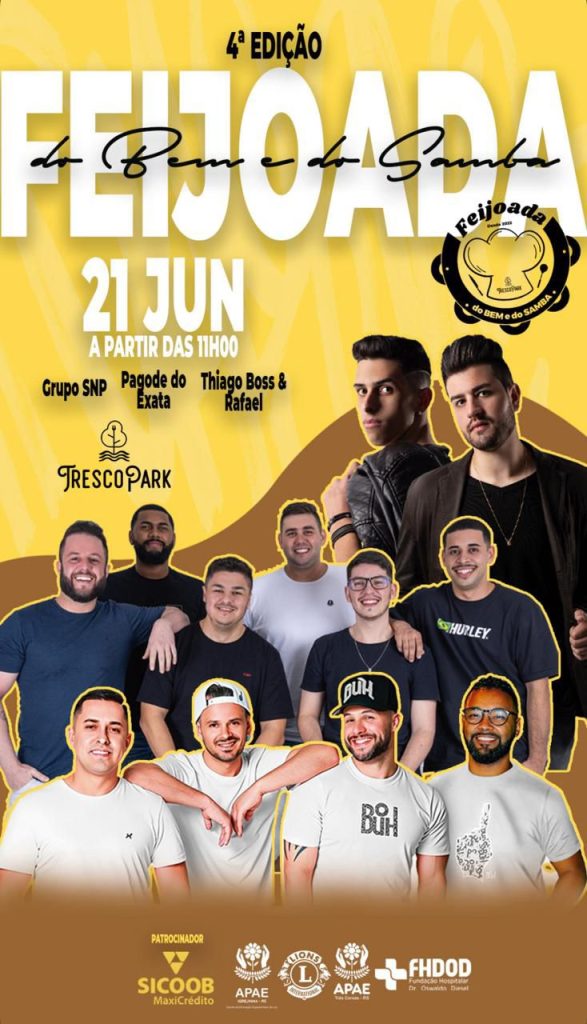 Neste sábado (21), Três Coroas recebe um grande encontro de solidariedade, música e sabor. A Feijoada do Bem com Samba, evento beneficente que será realizado no Trescopark a partir das 11h, terá toda a renda destinada a duas instituições do município: 50% para a APAE de Três Coroas e 50% para a Fundação Hospitalar Dr. Oswaldo Diesel.