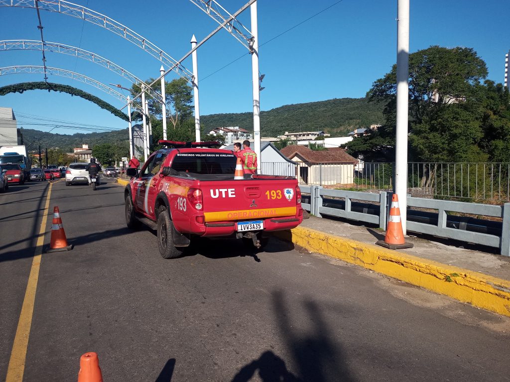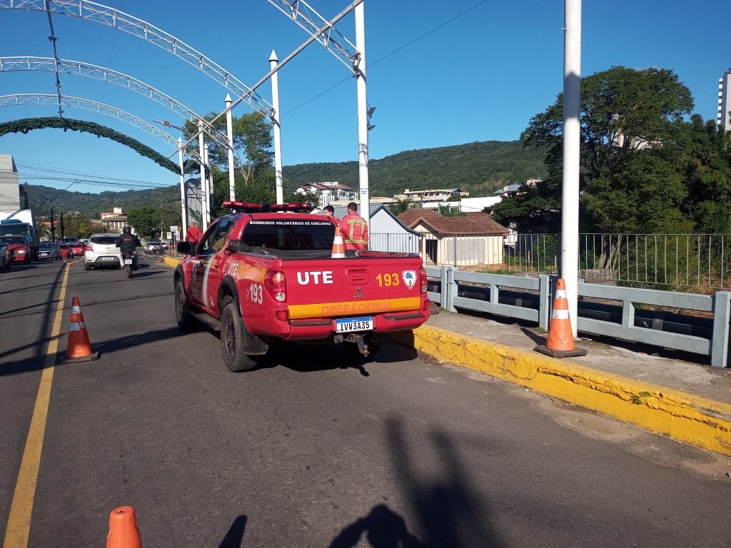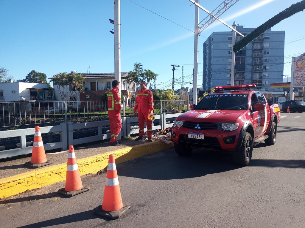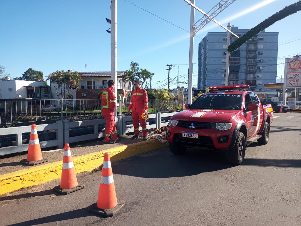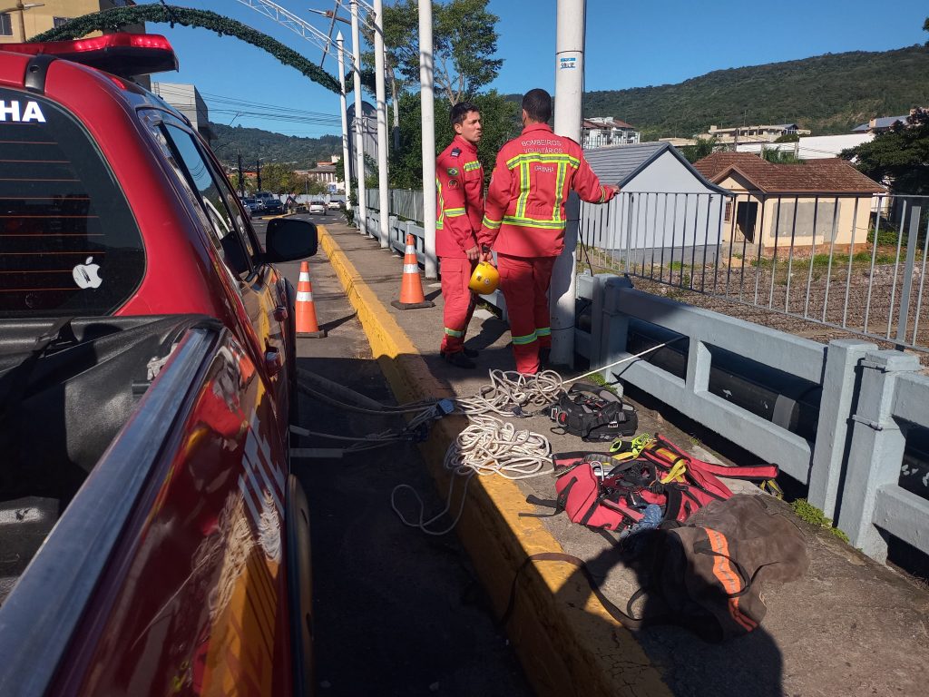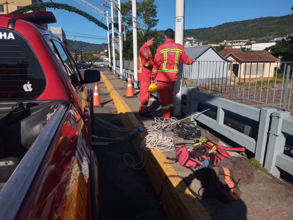 Fio de aço sob ponte mobiliza Corpo de Bombeiros em Igrejinha