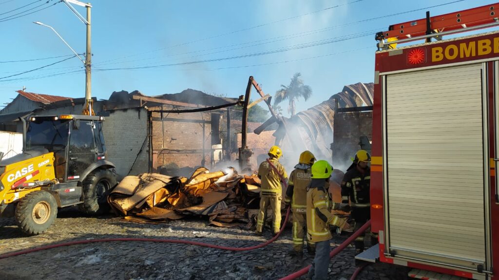 Fogo destrói galpão em depósito de desmanche de veículos em Parobé – Veja vídeo
