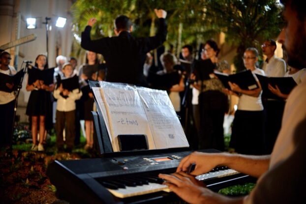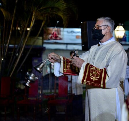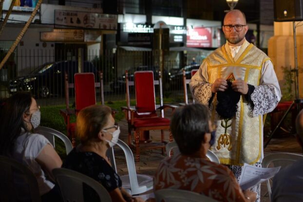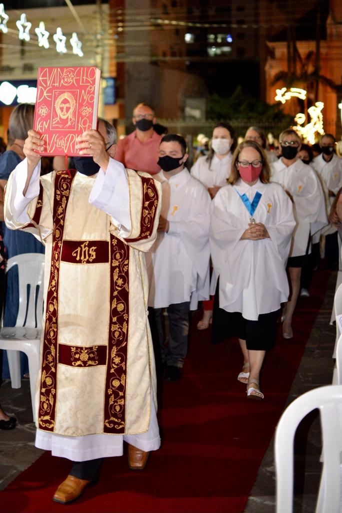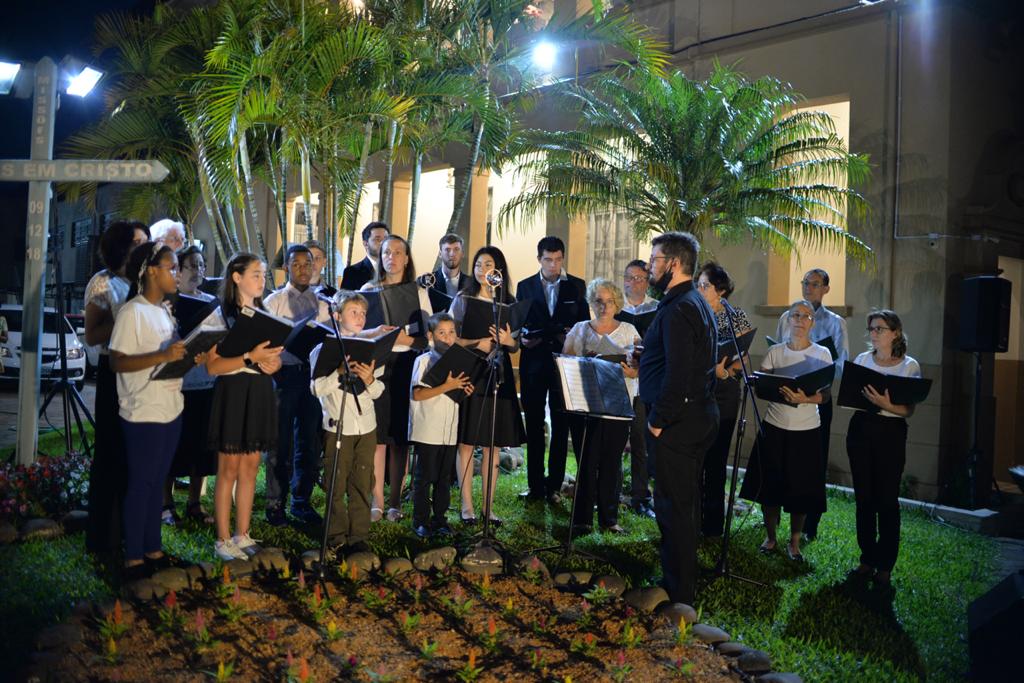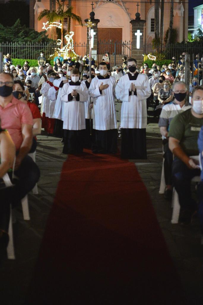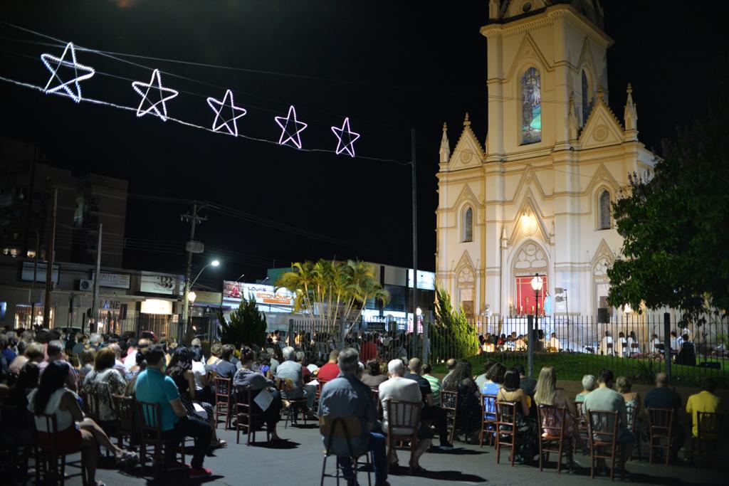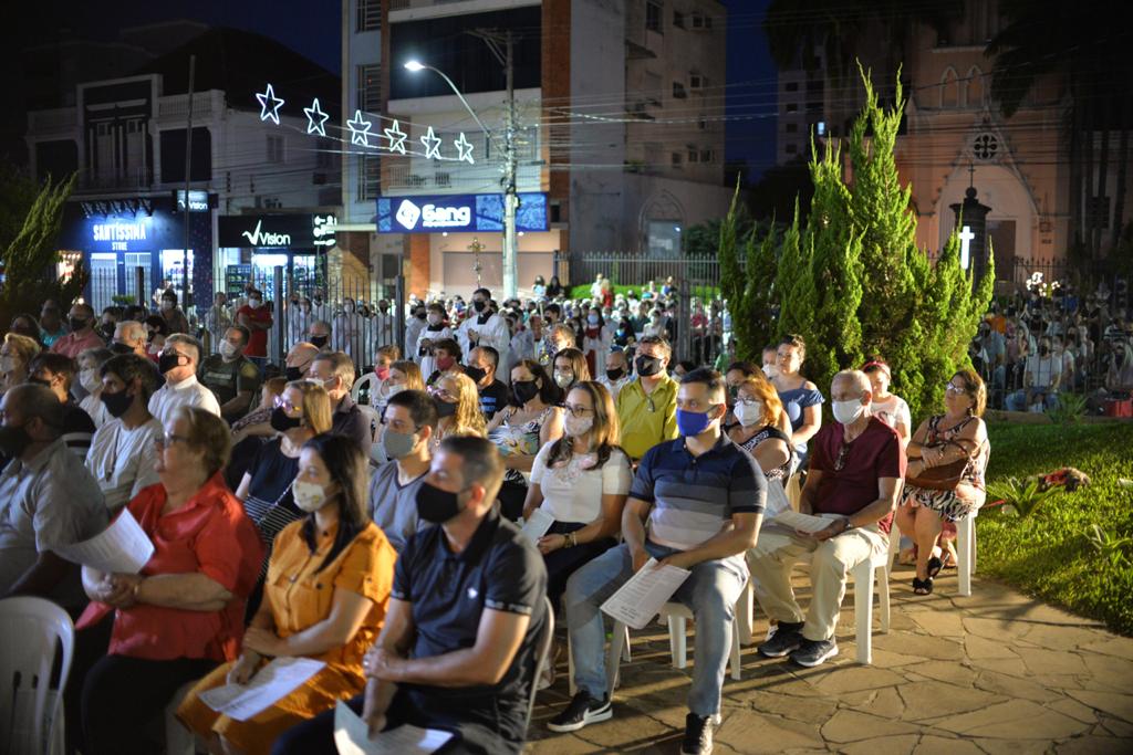 A noite da última quarta-feira (24) foi especial na Paróquia Senhor Bom Jesus, de Taquara. A igreja matriz sediou, em sua área externa, uma missa especial de Natal, celebrada pelo padre Luciano de Almeida, pároco do município. A celebração encantou o público presente, pela novidade de realizar, ao ar livre, uma missa natalina. O calendário de missas de Natal em Taquara, neste domingo (27), tem as seguintes atividades: 8h30min – missa na matriz, com transmissão da Rádio Taquara; 10h – missa na capela Nossa Senhora de Fátima; 10h – missa na capela Santa Rosa de Lima; 17h30min – missa na capela São Francisco; e 19h30min – missa na matriz, com transmissão da Rádio Taquara.