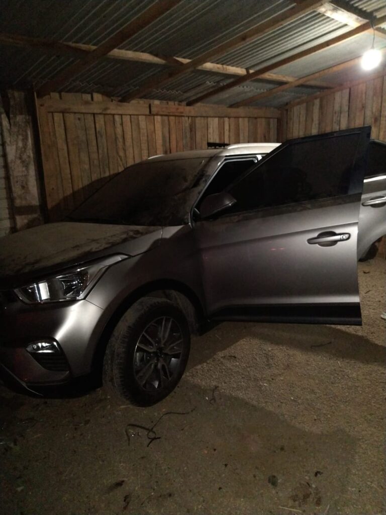 Em um galpão, junto da mesma residência, foram localizados ainda o automóvel Hyundai/Creta, cor prata, com placas IXX-6734 clonadas, sendo as verdadeiras IXU 0864, e o Lifan/530, cor preta, com placas IXC-8747, em situação de furto/roubo. Diante dos fatos, foi dado voz de prisão aos dois indivíduos, sendo presos por receptação e adulteração de sinal identificador.