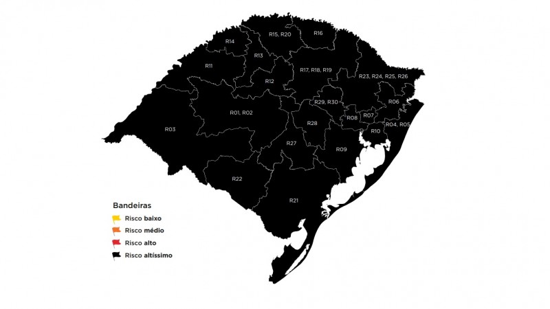 O governo do Estado anunciou, nesta sexta-feira (16), a manutenção de todas as regiões gaúchas em bandeira preta no sistema de distanciamento controlado, que completou 50 semanas. É a oitava semana consecutiva com essa classificação – o nível de risco mais grave do modelo. Segundo o governo, ocorreram melhorias em alguns indicadores, mas que não alteram a classificação final.