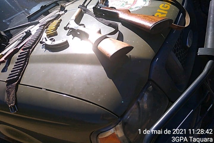 De acordo com a polícia, os homens teriam informado que estavam no local caçando animais da espécie Quati, mas que não haviam abatido nenhum animal, e que as armas não possuíam registro.