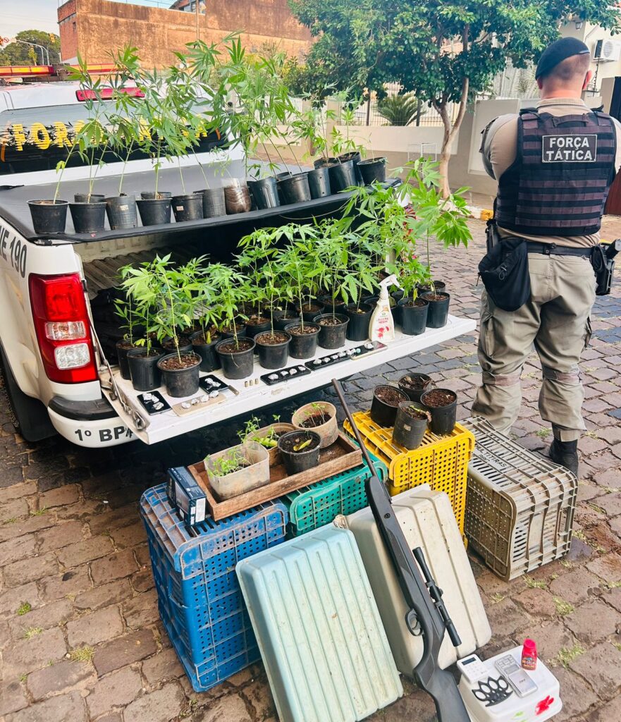 Conforme a BM de Três Coroas, no local foram apreendidos 50 pés de maconha, 15 porções de maconha (já fracionadas), uma balança de precisão, quatro telefones celulares, dois potes com sementes de maconha, uma espingarda de pressão alterada para disparar munição de calibre 22, bem como cartuchos de munição de espingarda e revólver já deflagrados.