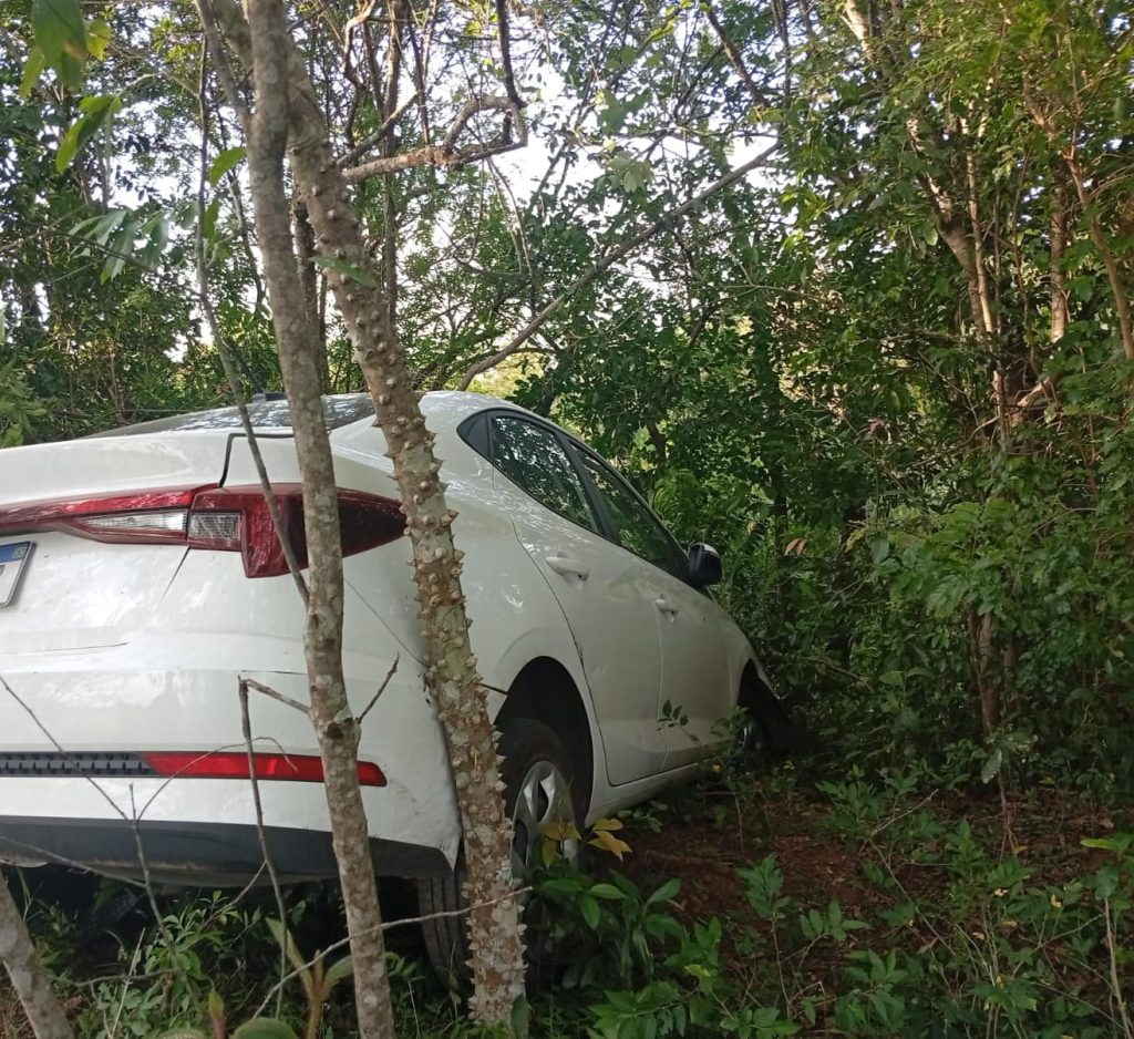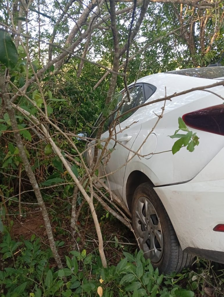 Durante as buscas, o carro foi encontrado com danos em uma área de mata, após o condutor perder o controle durante a fuga. No local, os policiais também encontraram o homem suspeito do furto.