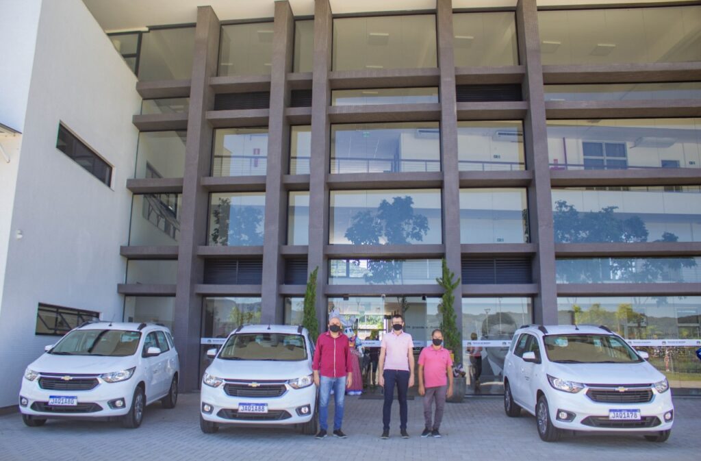 Os novos veículos foram entregues (foto acima) pelo prefeito Leandro e pelo vice-prefeito Joãozinho Lopes ao secretário em exercício de Saúde, Vinicio Wallauer, no Centro Administrativo Prefeito Lauri Auri Krause.