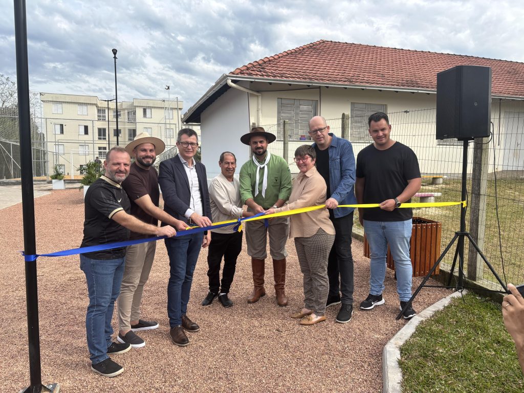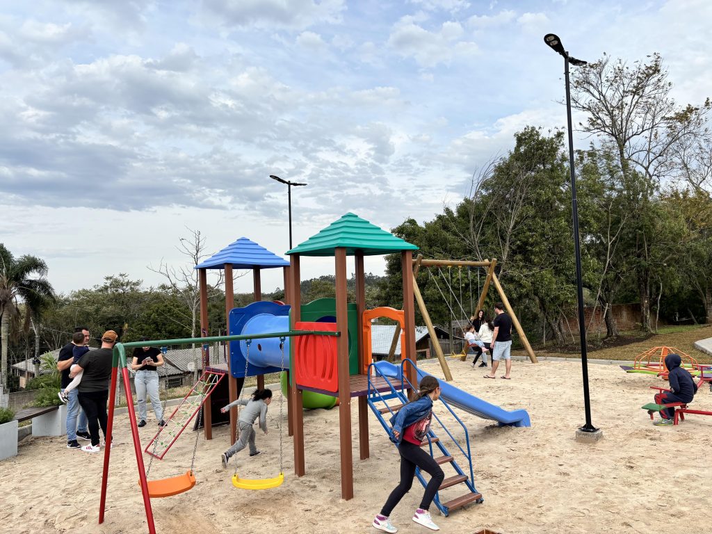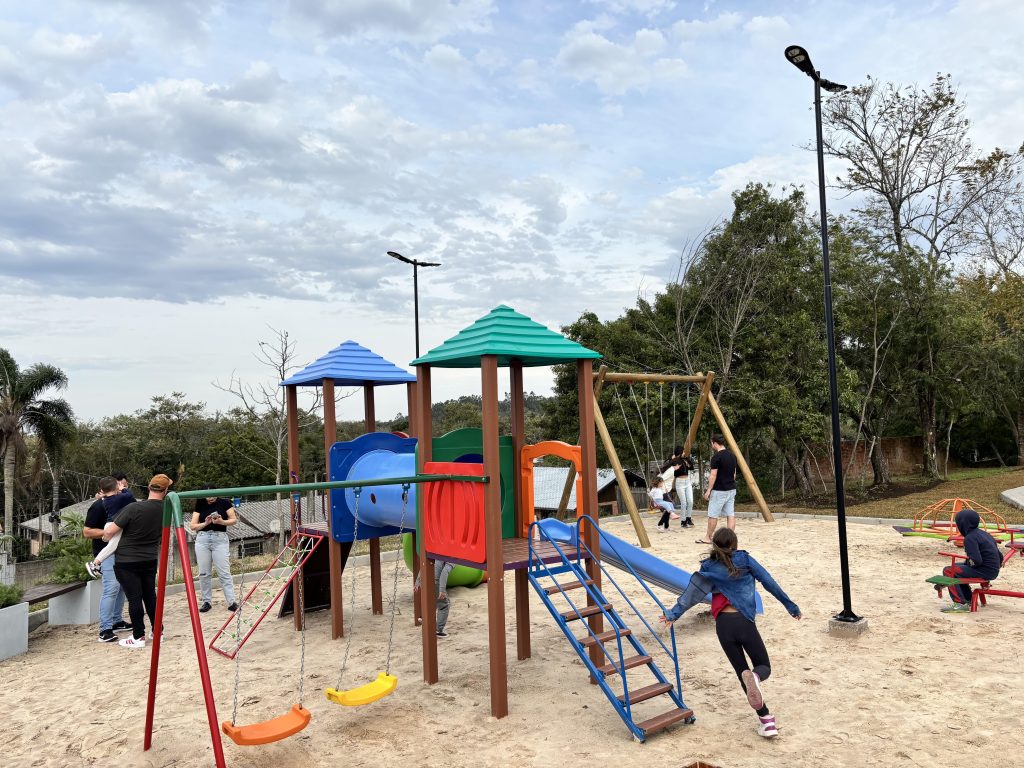A Prefeitura de Igrejinha inaugurou, neste sábado (2), a Praça Osmar Delmar Schoenardie, no bairro Bom Pastor, ampliando os espaços públicos de convivência e homenageando uma figura marcante da história política e social do município. Com investimento de R$ 314.400,00 e área total de 1.340,40 m², a praça conta com quadra de areia, playground, academia ao ar livre, pavimentação e paisagismo.