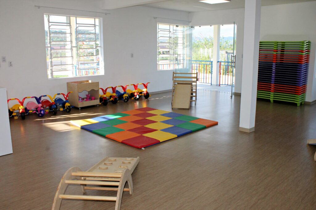 A nova escola, que atenderá inicialmente 100 alunos da etapa creche, tem uma estrutura com quatro salas de aula com solário, sendo dois berçários e dois maternais, refeitório, cozinha, lavanderia, sala dos professores, recepção, secretaria, sala de direção, sala de coordenação e um pátio externo amplo, onde foi montada uma pracinha com brinquedos.