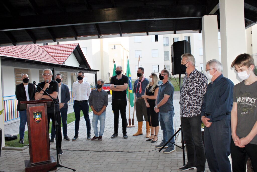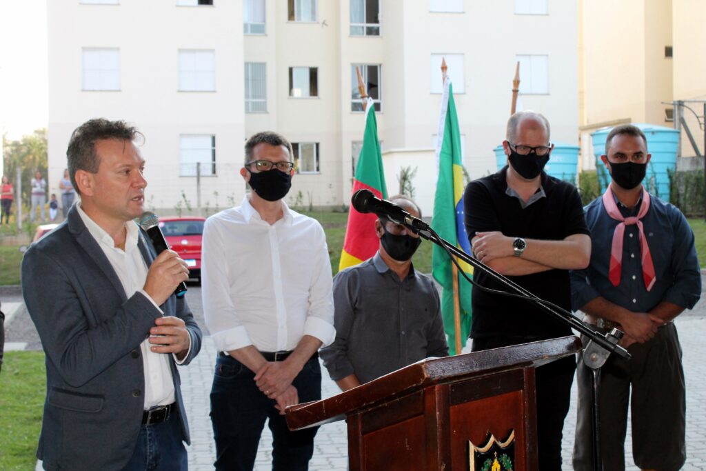 Acompanhado por seus irmãos, Tibúrcio e Adair, o empresário Paulo Grings falou em nome da família, destacando toda sua emoção em ver aquele projeto finalmente concluído, podendo beneficiar tantas famílias do bairro Bom Pastor e arredores.