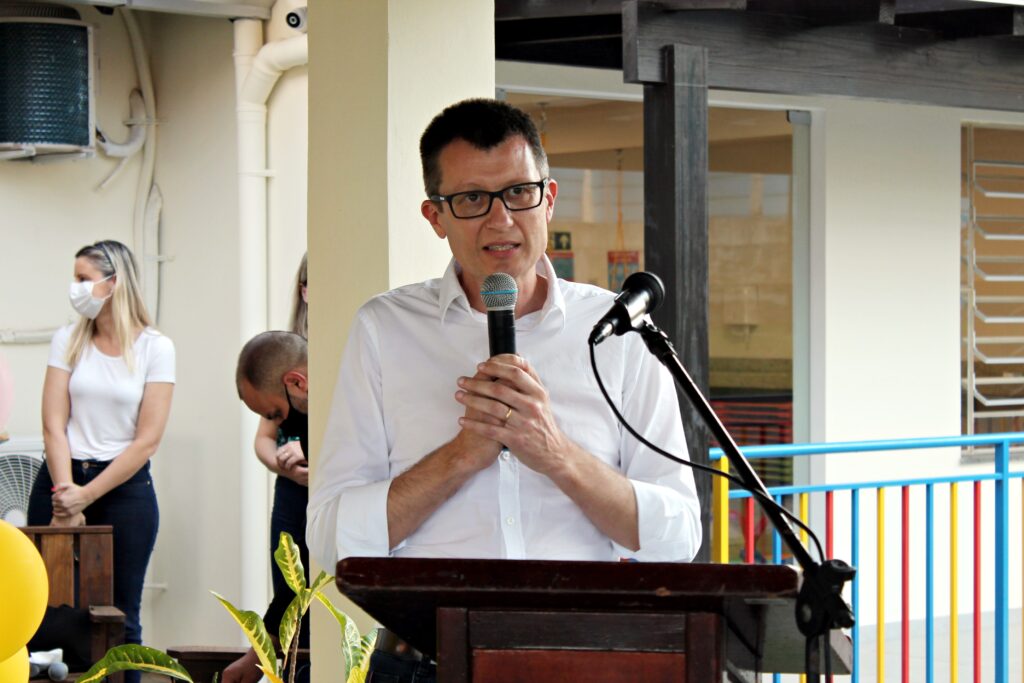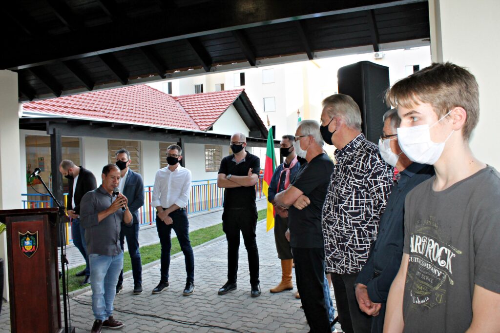 “Fico muito orgulhoso e, tenho certeza de que estou falando também em nome dos meus irmãos, muito agradecido por todo o empenho da administração municipal em finalizar esse projeto e transformar aquele antigo prédio nessa linda escola que estamos vendo aqui”, comemora o empresário, descendente de João Henrique Alfredo Grings.
