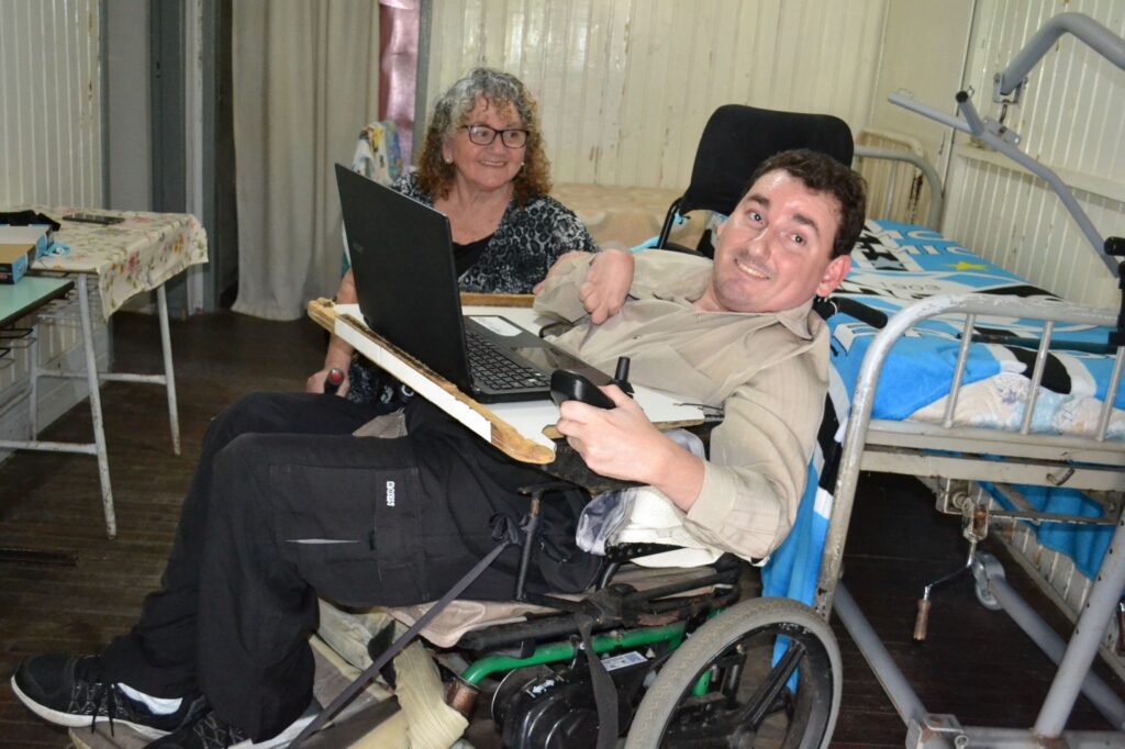 “Encontrei no lixo uma sem encosto. Tirei o encosto de uma cadeira de alumínio que tinha em casa e adaptei na de rodas. E assim ele ia para a escola. Não faltava um dia. Quando estava chovendo muito, enchíamos ele de plásticos em volta para não se molhar, mas não faltava aula”, relembra Celoni.