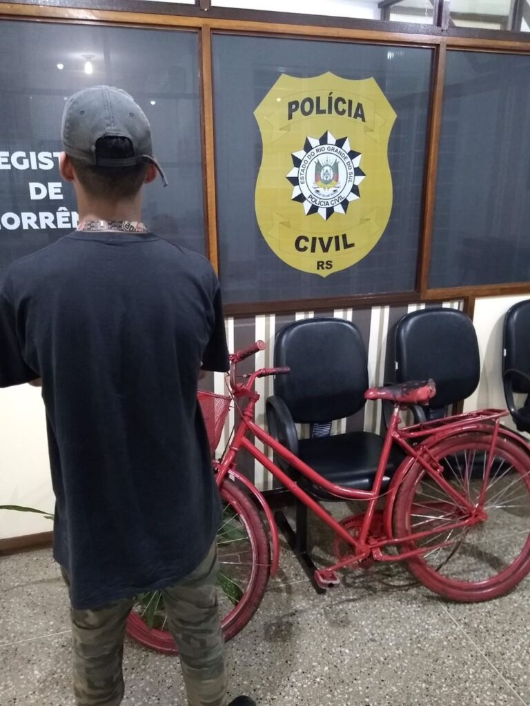 Os policiais identificaram o homem, E.L.V.M., de 23 anos, e um adolescente, de 15 anos, através de imagens de câmeras de monitoramento no momento em que estavam subtraindo as bicicletas pertencentes ao município. Os agentes recuperaram uma bicicleta e peças de outra, enquanto que a Brigada Militar apreendeu a terceira abandonada em via pública.