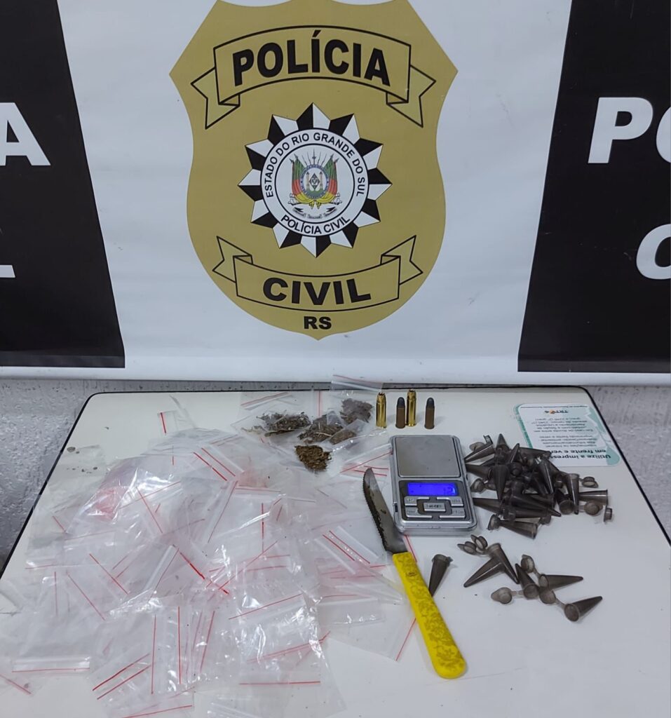 Agentes da Delegacia de Polícia (DP) de Igrejinha cumpriram, na tarde desta quinta-feira (13), mandado de busca e apreensão na casa de suspeito de promover a venda de drogas. Durante as diligências, foram localizadas porções de maconha embaladas para venda, diversas embalagens e pinos para fracionamento de porções de cocaína, valores em dinheiro e cartuchos de arma de fogo. O indivíduo, de 29 anos, foi preso em flagrante por tráfico de entorpecentes e posse de munição de arma de fogo. Após a formalização da prisão na DP, o homem foi levado à Delegacia de Polícia de Pronto Atendimento (DPPA) de Taquara, onde aguarda por agendamento de audiência de custódia.